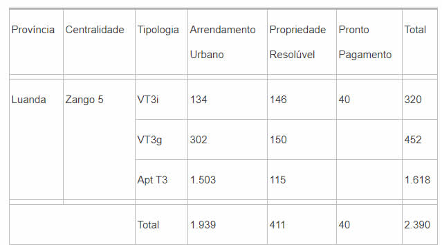 O responsável, que falava no acto do lançamento do “Portal de venda livre de habitação na centralidade do Zango 5, em Luanda”, disse que já foram comercializadas as habitações destinadas a dois dos três grupos de clientes alvo: Função Pública correspondente a 40%, grandes empresas públicas e privadas correspondente a 30%.