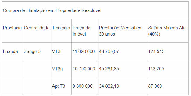 As habitações são destinadas a cidadãos de nacionalidade angolana com mais de 18 anos de idade, que não tenham antes arrendado ou comprado casa ao Estado e cujos salários ou rendimentos sejam compatíveis com o preço da tipologia a que se candidatam.