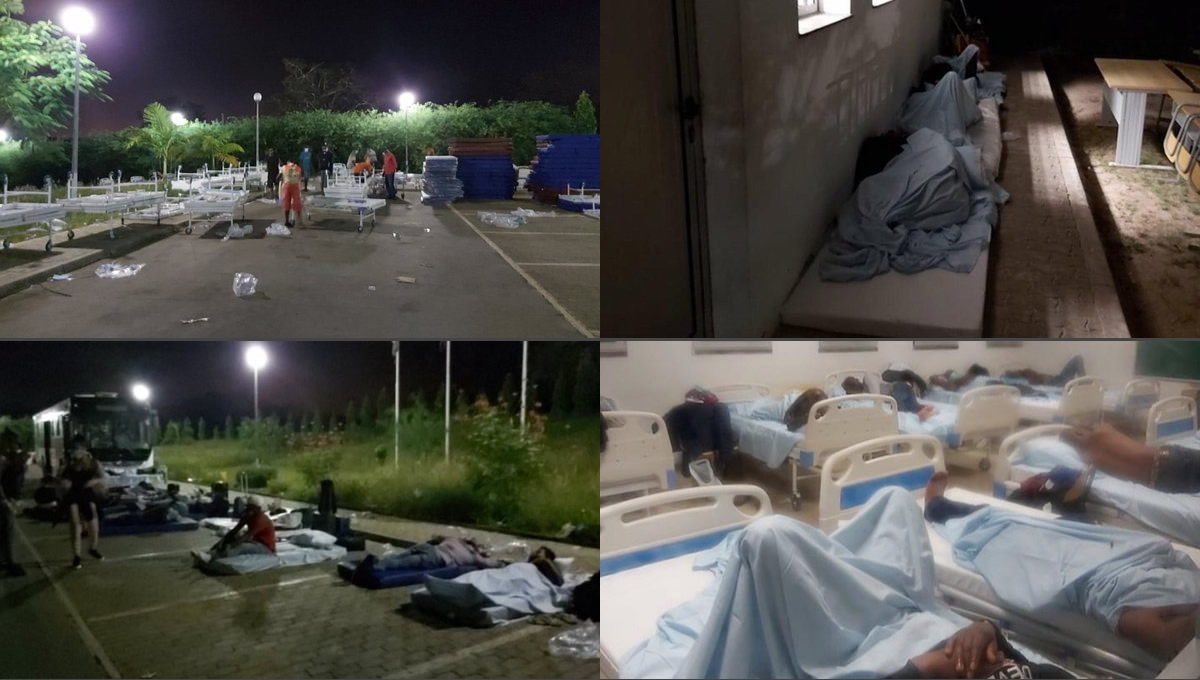 “À chegada, as pessoas vindas do voo de Lisboa, que já lá estavam, gritavam para nós ‘Não desçam do autocarro!’, mas nós não percebíamos bem porquê”, conta agora, quase 72 horas passadas, a partir da segurança de um quarto de hotel onde está agora acomodado. A situação foi resolvida depois de vários dos angolanos que ali foram colocados terem protestado e denunciado a situação nas redes sociais. As fotografias das camas a serem montadas ao relento e os áudios dos viajantes isolados a relatarem a falta de condições sanitárias circularam por muitos e chegaram a sites como o Maka Angola. “Não havia espaço para todos. Puseram-nos 6 a 15 em cada quarto. Muitos de nós acabámos por dormir ao relento ou sentados nos autocarros. Há muitos mosquitos aqui e com estas condições estamos expostos a outras doenças”, relatava uma das angolanas ouvidas pelo projeto do ativista Rafael Marques.