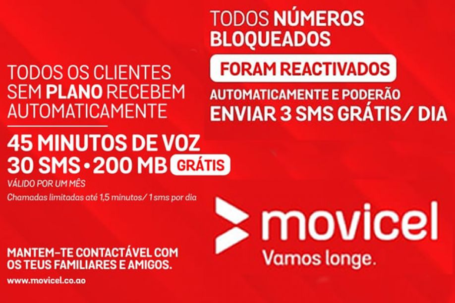 No âmbito da sua responsabilidade social, e em linha com o comunicado do Ministério das Telecomunicações e das Tecnologias de Informação, a Movicel preparou um conjunto de acções que visam manter os seus clientes permanentemente contactáveis com os seus familiares e amigos, durante o Estado de Emergência, face à pandemia do Coronavírus “Covid-19” que grassa o mundo.