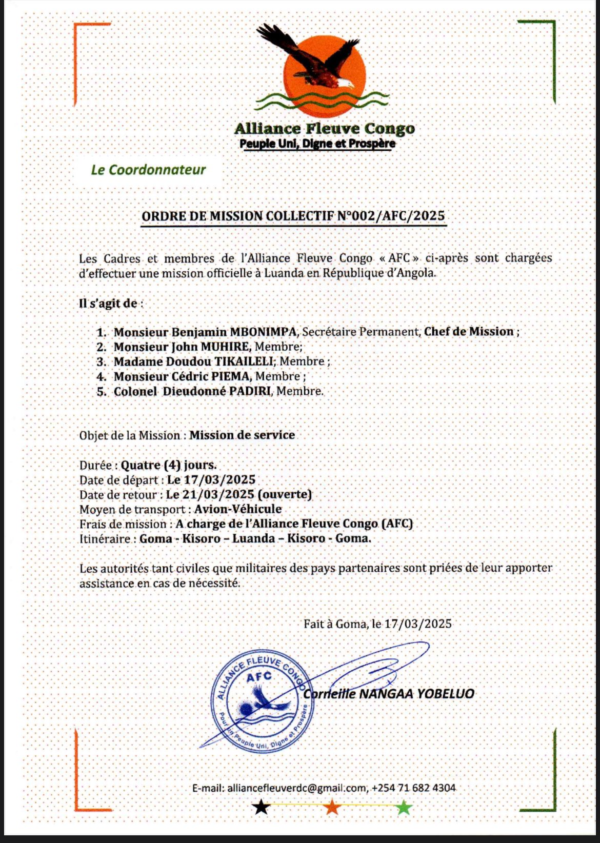 Através da rede social X, porém, o M23 informou que vai enviar uma delegação de cinco pessoas a Luanda, que será chefiada pelo Secretário Permanente do M23, Benjamin Mbonimpa, para participar nas negociações diretas com o governo congolês a pedido das autoridades angolanas.  As delegações começaram a chegar hoje em Luanda.